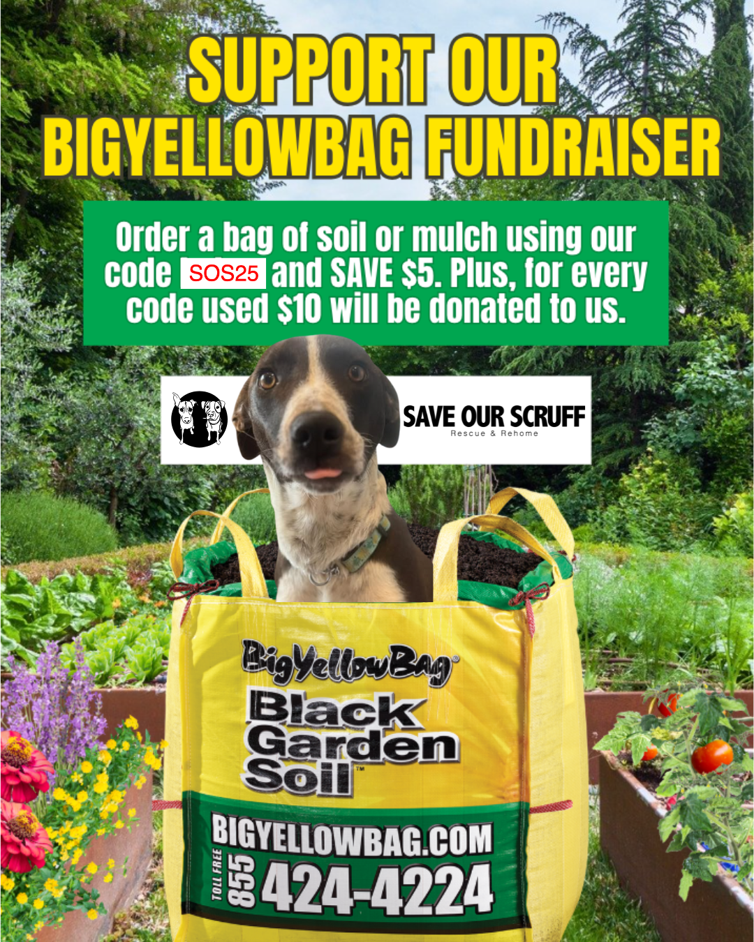 With every BigYellowBag® of soil or mulch you order using our code SOS25, $10 is donated directly back to us and you’ll save $5 on your order as well!