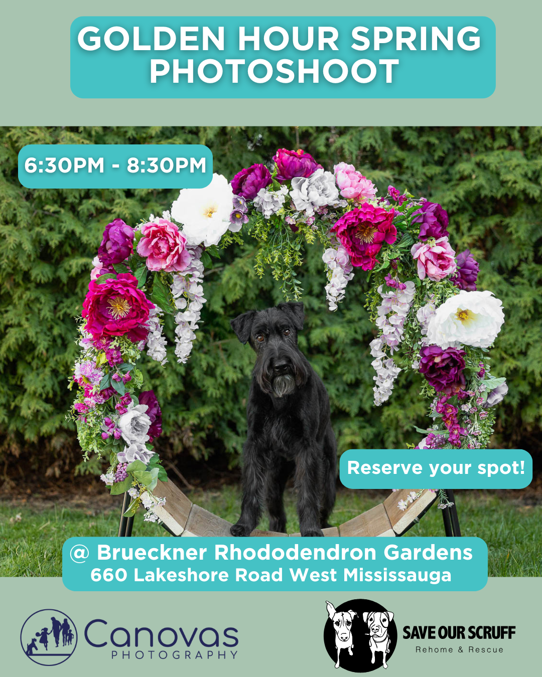 Your dog will be photographed by the incredibly talented Sharon of Canovas Photography, who knows just how to capture that perfect springtime glow for your furry companions! They'll have the opportunity to pose in front of the lovely floral hoop pictured above.