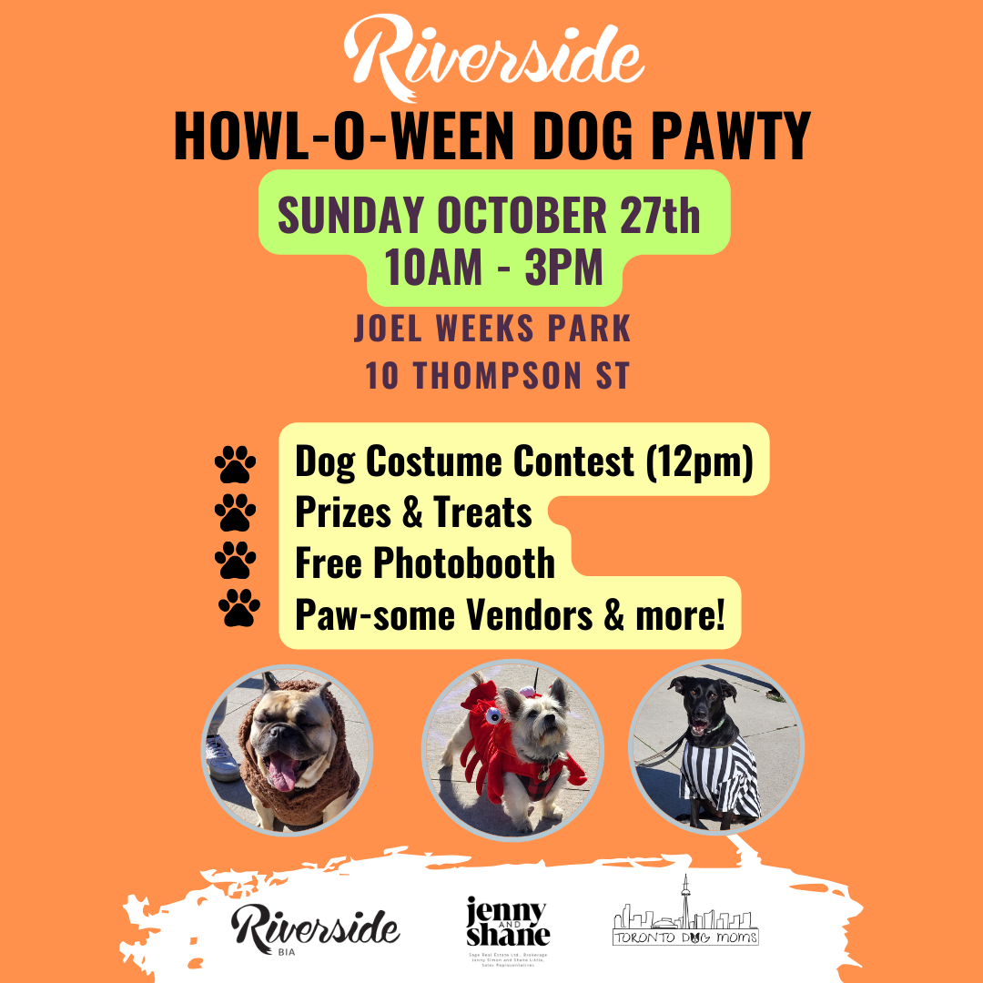 Get your costumes ready for the spook-tacular annual Riverside Halloween on Sunday, October 27th with kids activities from 10 am - 3pm at Riverside Common Park and fun for the pooches in Joel Weeks Park.