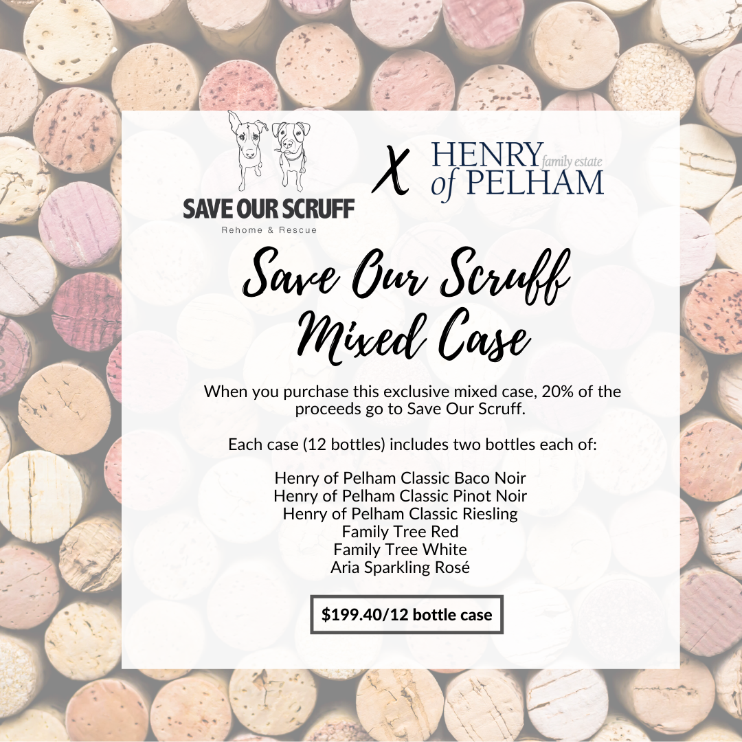 Do you like wine and dogs? How about a case of wine that helps save dogs? Henry of Pelham Family Estate Winery has put together a carefully selected 12 bottle case of wine and 20% of all proceeds will come to Save Our Scruff! You can order your case here.