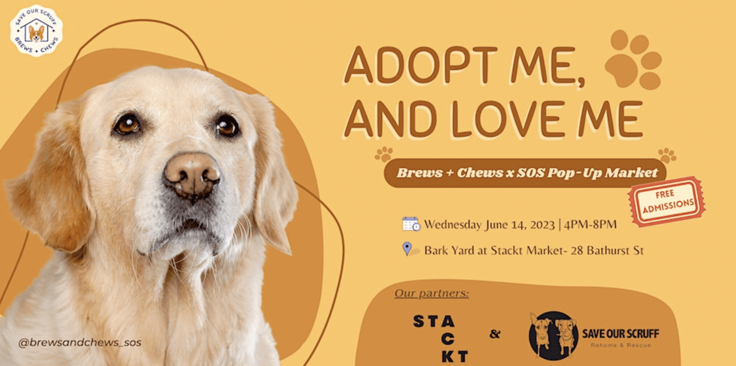 Don't have a furry friend to bring along? No problem! Thanks to Save Our Scruff (SOS), we are featuring some adoptable dogs looking for their furever homes. All proceeds will support Save Our Scruff's charitable efforts.