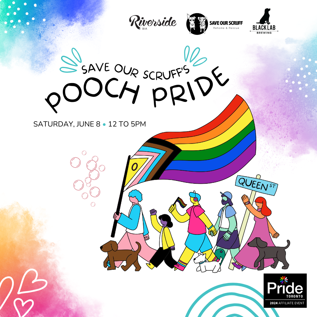 This year, we're taking the event to the east end, where our LGBTQ+ community, allies, and doggos will walk, roll, gallivant, and strut our stuff down Queen Street East from the Riverside Eats & Beats Streetfest towards Black Lab Brewing to continue celebrating Pride.